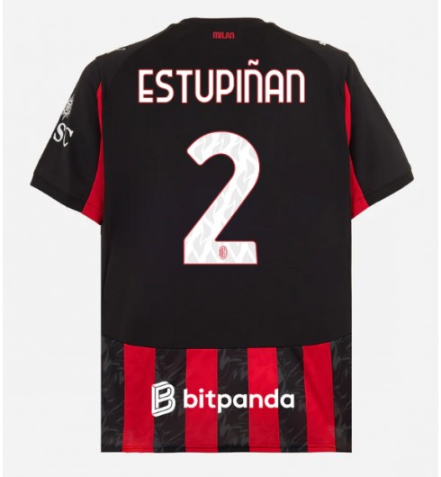 Moške Nogometnih dresov AC Milan Pervis Estupinan #2 Domači 2025-26 Kratki rokavi