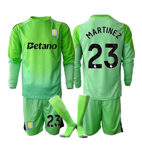 Otroške Nogometnih dresov Aston Villa Emiliano Martinez #23 Vratar Gostujoči 2025-26 Dolgi rokavi (+ hlače)