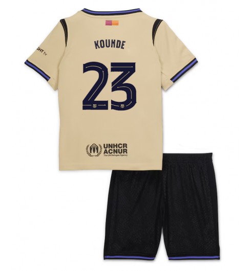 Otroške Nogometnih dresov Barcelona Jules Kounde #23 Gostujoči 2025-26 Kratki rokavi (+ hlače)