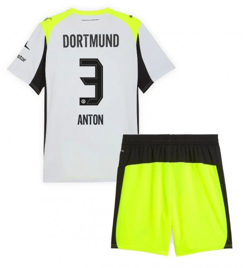 Otroške Nogometnih dresov Borussia Dortmund Waldemar Anton #3 Gostujoči 2025-26 Kratki rokavi (+ hlače) 4 0