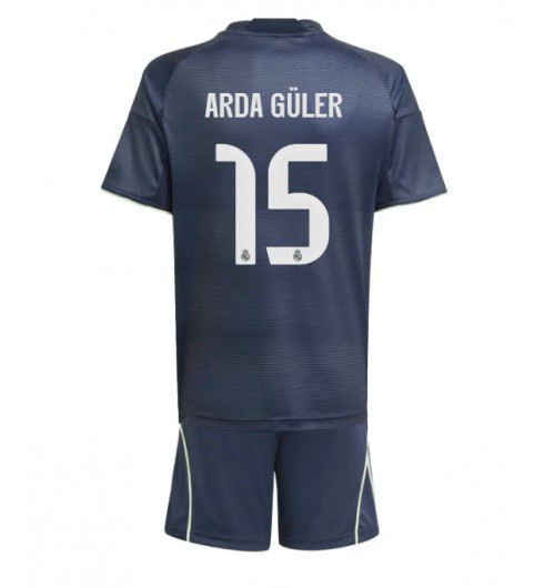 Otroške Nogometnih dresov Real Madrid Arda Guler #15 Gostujoči 2025-26 Kratki rokavi (+ hlače)