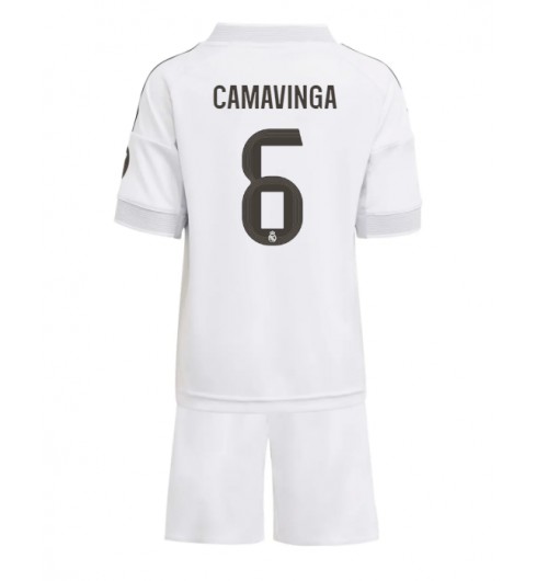 Otroške Nogometnih dresov Real Madrid Eduardo Camavinga #6 Domači 2025-26 Kratki rokavi (+ hlače)