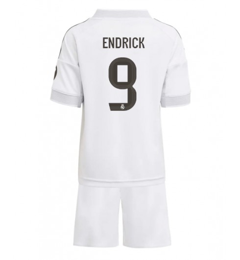 Otroške Nogometnih dresov Real Madrid Endrick #9 Domači 2025-26 Kratki rokavi (+ hlače)